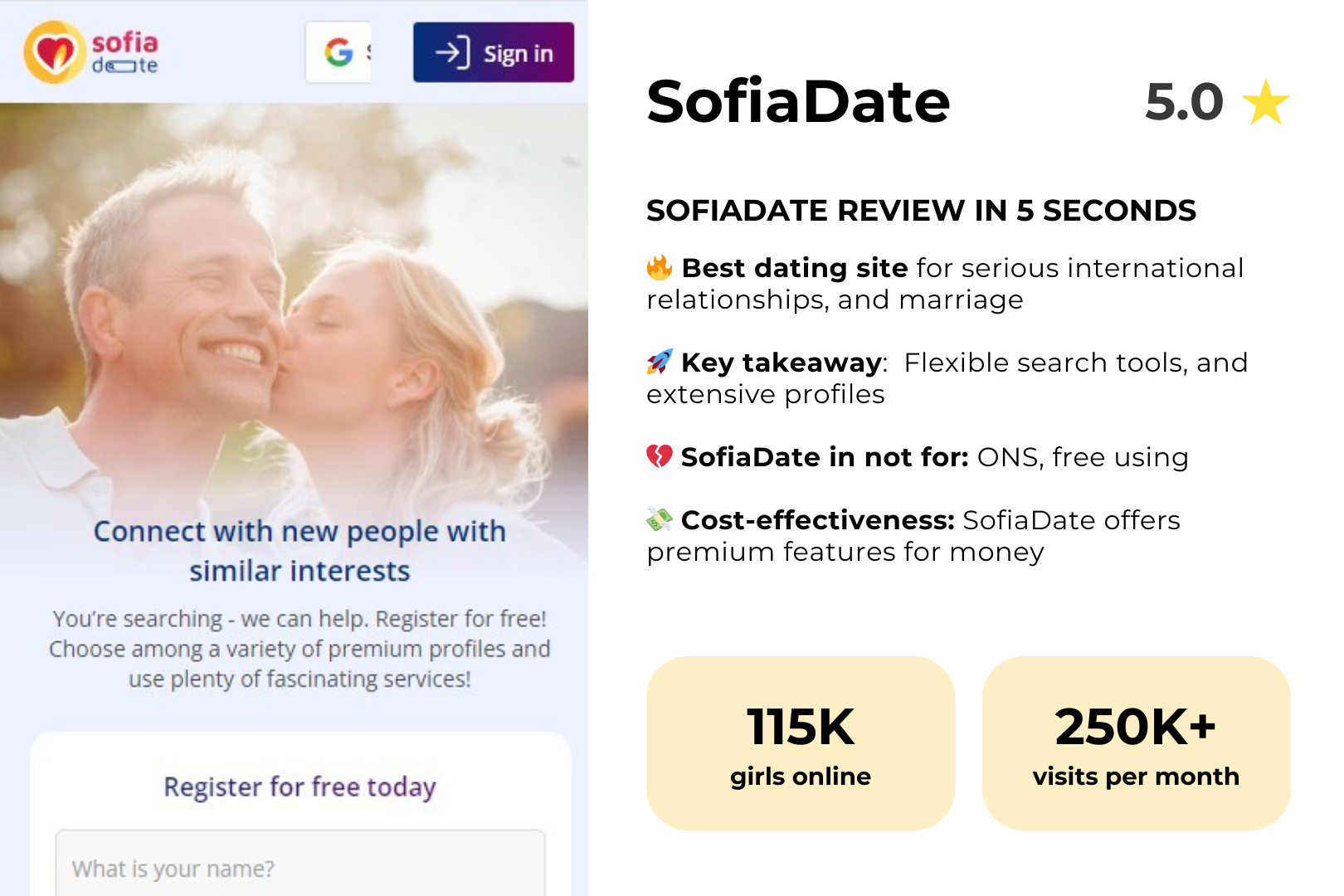 SofiaDate is a website where you can conveniently fulfill a girl, according to its makers. We chose to examine exactly how real this statement is and experienced the registration process, checked out all the possibilities and prices. Therefore, we have thought of a complete and unbiased SofiaDate evaluation, where you can easily find whatever you need to understand.